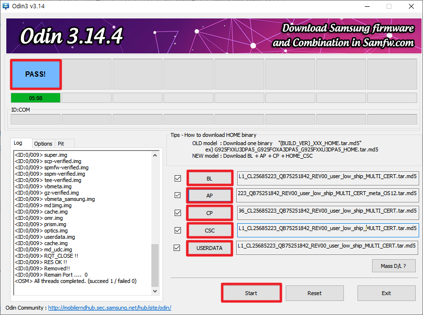 4. 휴대폰 순정 펌웨어 설치 및 루팅 펌웨어 생성