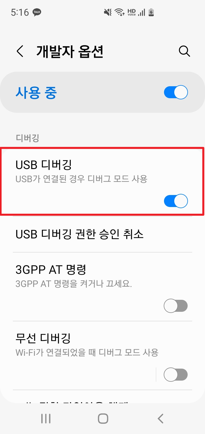 다. [ 2. 휴대전화 개발자 모드 활성화 및 설정 변경 ] 재진행