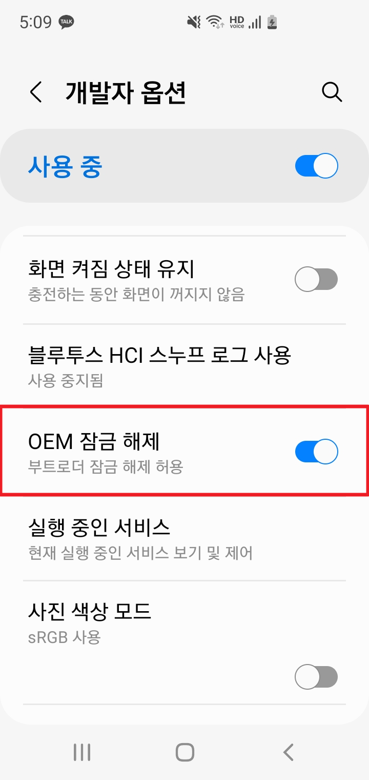 ※ 만약 OEM 잠금 해제 항목이 보이지 않을 경우 다음 과정을 수행한다.