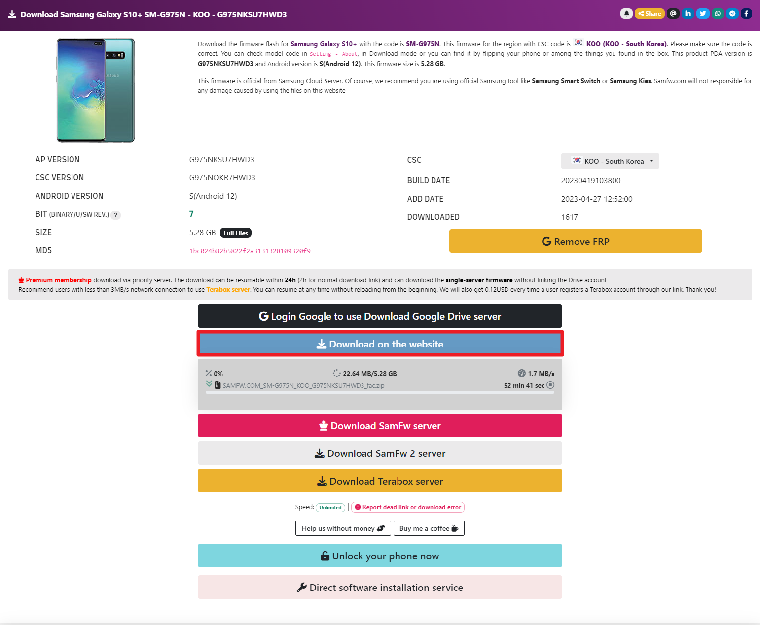 기기 Lock 해제 과정을 진행후 다운로드 모드를 진입이 필요했다.