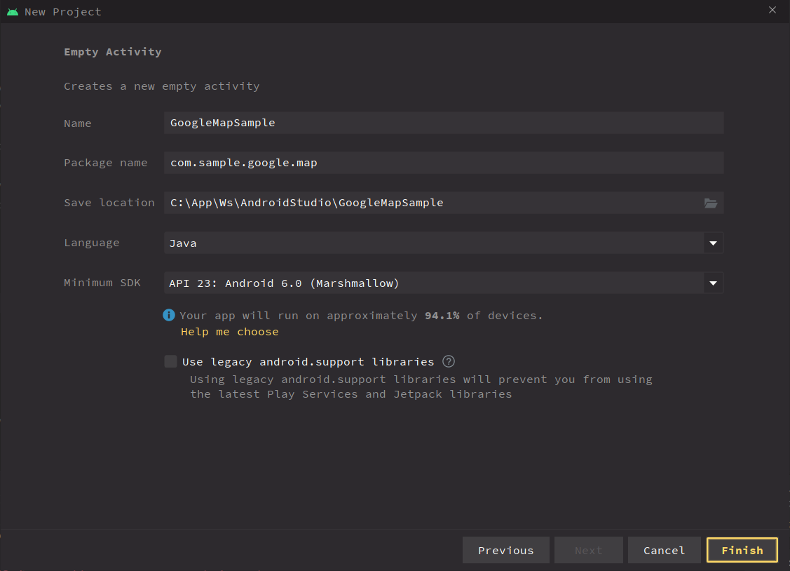 [ com.sample.google.map ] → [ MainActivity.java ] 저장